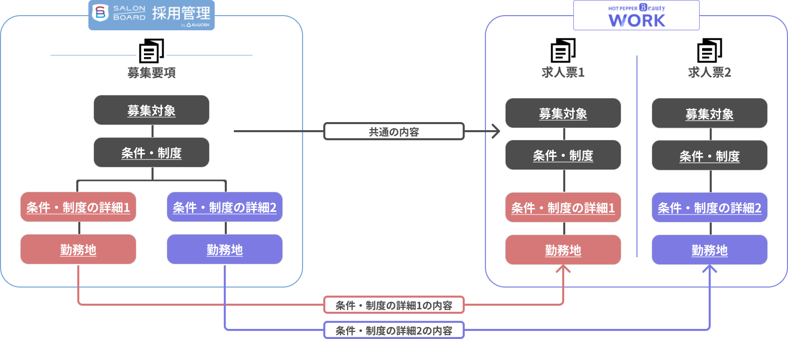 募集要項の詳細条件ごとに掲載される求人票の概念図